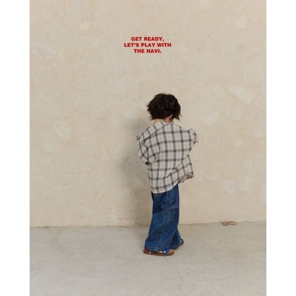 130~160:pocket wide denim pants / navi