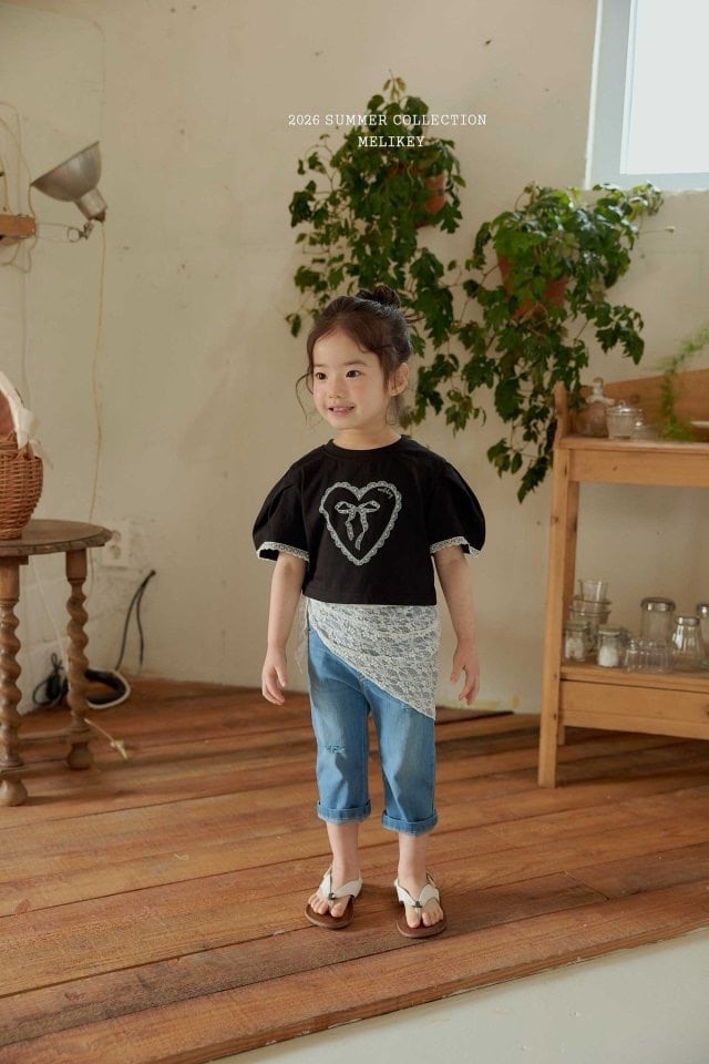 «80~120» melikey ハートリボンTシャツ / heart ribbon Tshirt
